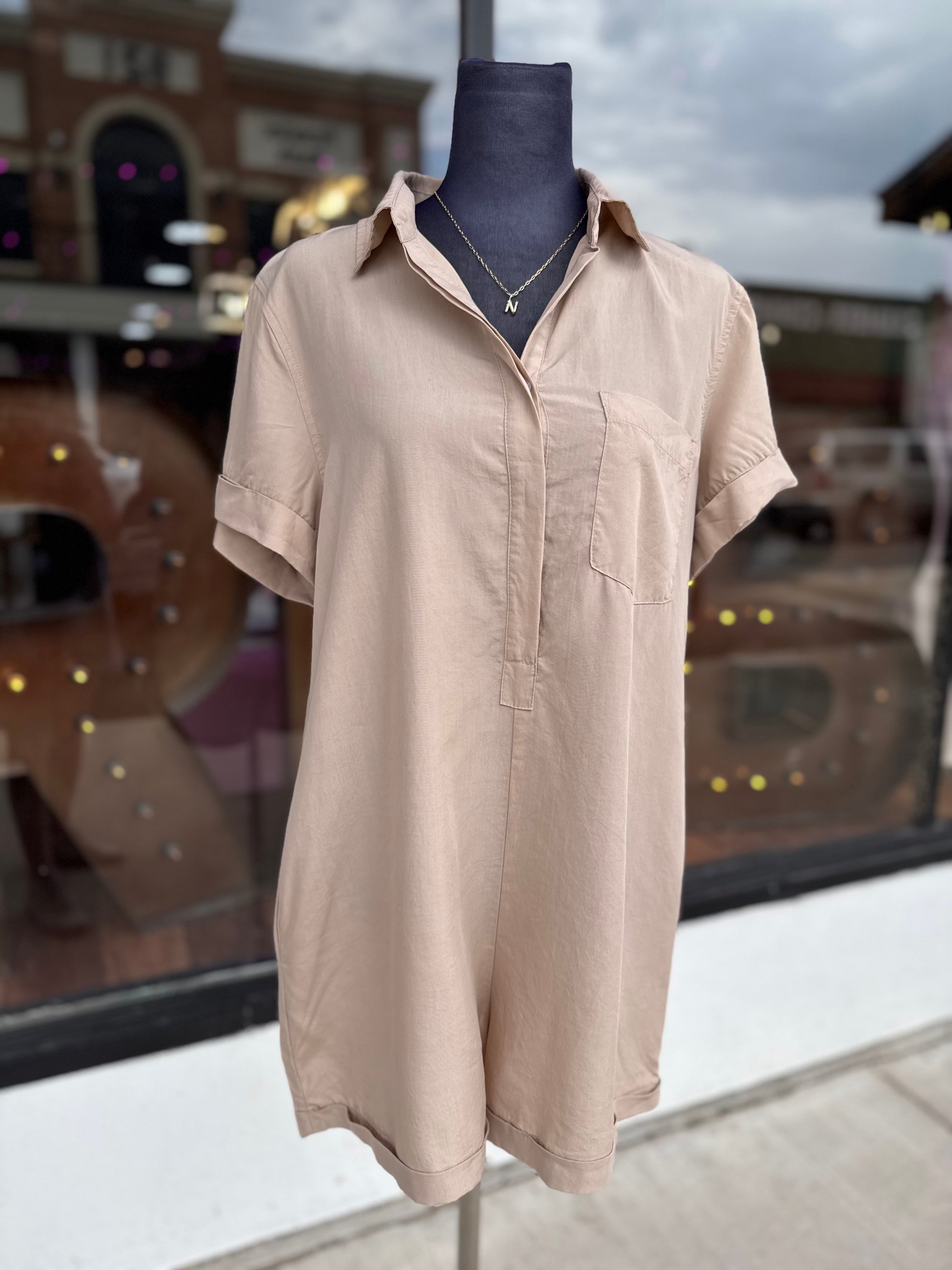 Taupe Denim Button Down Romper