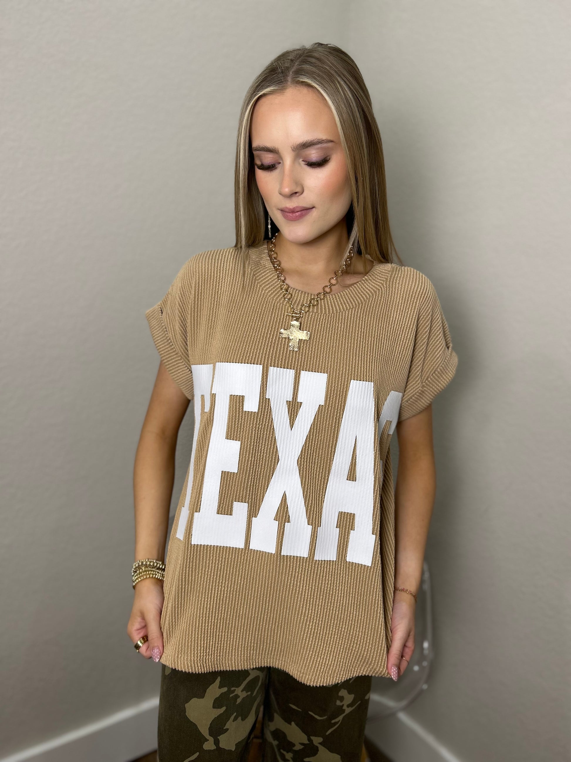 Texas Short Sleeve Knit Top in Khaki
